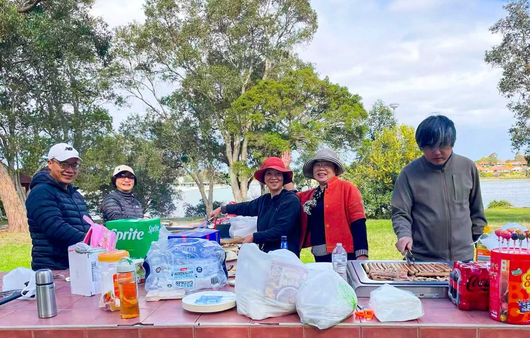 上午11时许,来自四面八方的浙大校友陆续汇聚到罗德公园。这里是位于悉尼内西区铁湾(Iron Cove)西端的小半岛,环海湾步道 Bay Run 全长七公里,是悉尼最著名的滨海健身步行路线之一。校友黎莉、徐剑萍、梁寒玉, Alan等早早到达,摆好了食品与饮品;校友陈培忠、朱唯、李力、陈华等主持BBQ场地,悉心为大家烧烤,香气四溢,共同迎接校友们的到来。到场人数超过60人,从花甲老人到稚气学童,宛如一个大家庭欢度周末。
